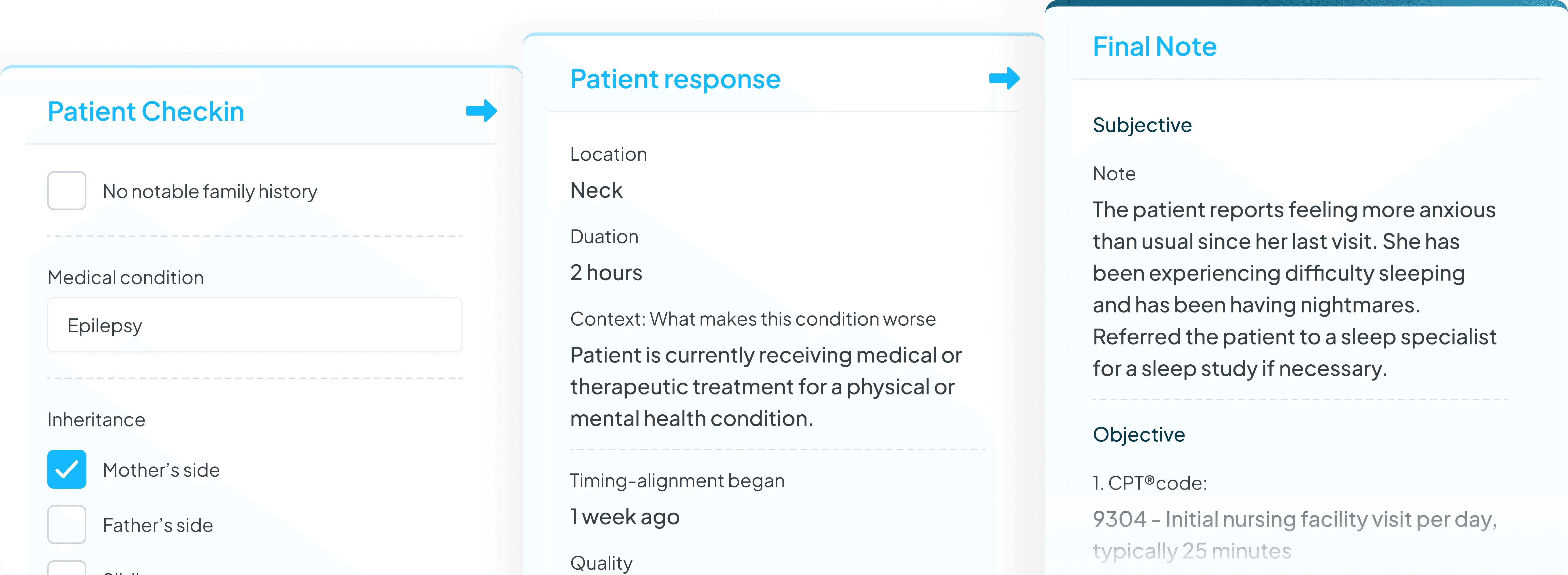 By combining powerful AI with flexible documentation tools, our solution reduces the documentation burden, allowing you to focus on patient care.