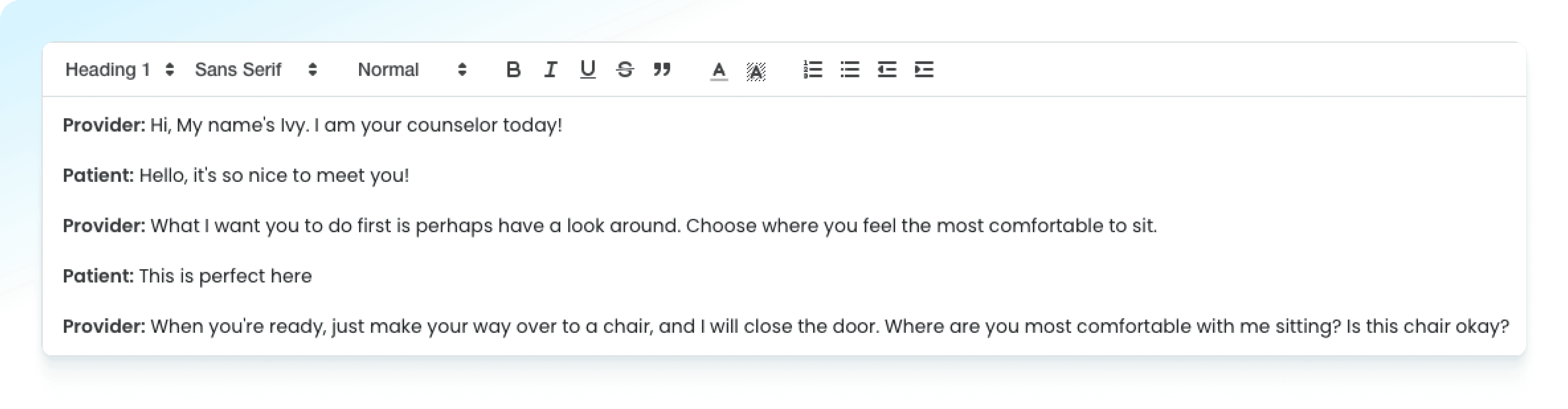 Finally, a mental health note to accommodate therapists of all kinds and prescribers. Our innovative Mental Health Assessment automates treatment plan generation using AI during intake documentation. For returning patients, seamlessly default to our Efficiency Progress Note.