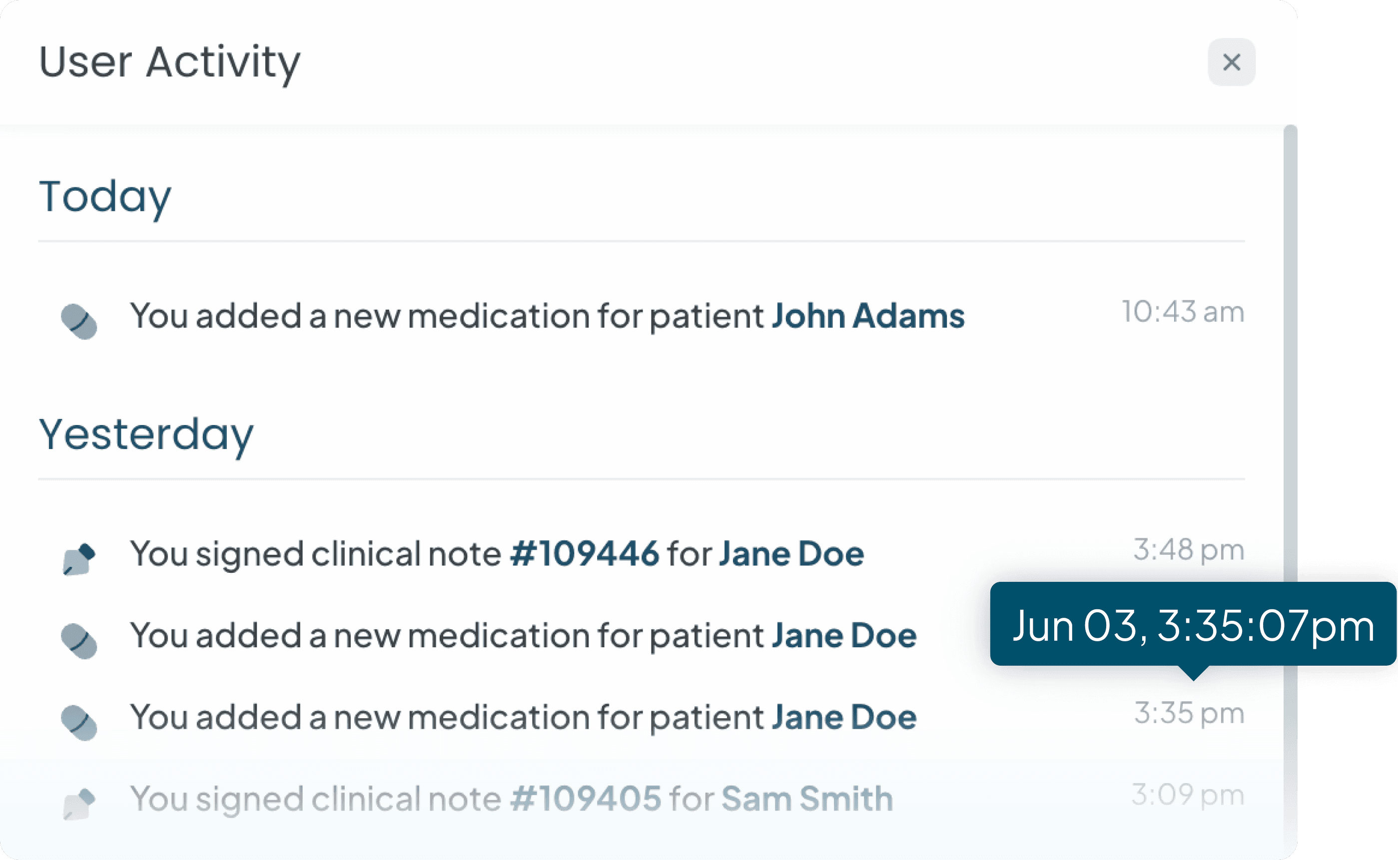 Personalize your charting experience for each provider! Tailor the data you want to see and how it's presented. Effortlessly aggregate data across encounters, including patient history inputs, intake forms, orders, prescriptions, and more!