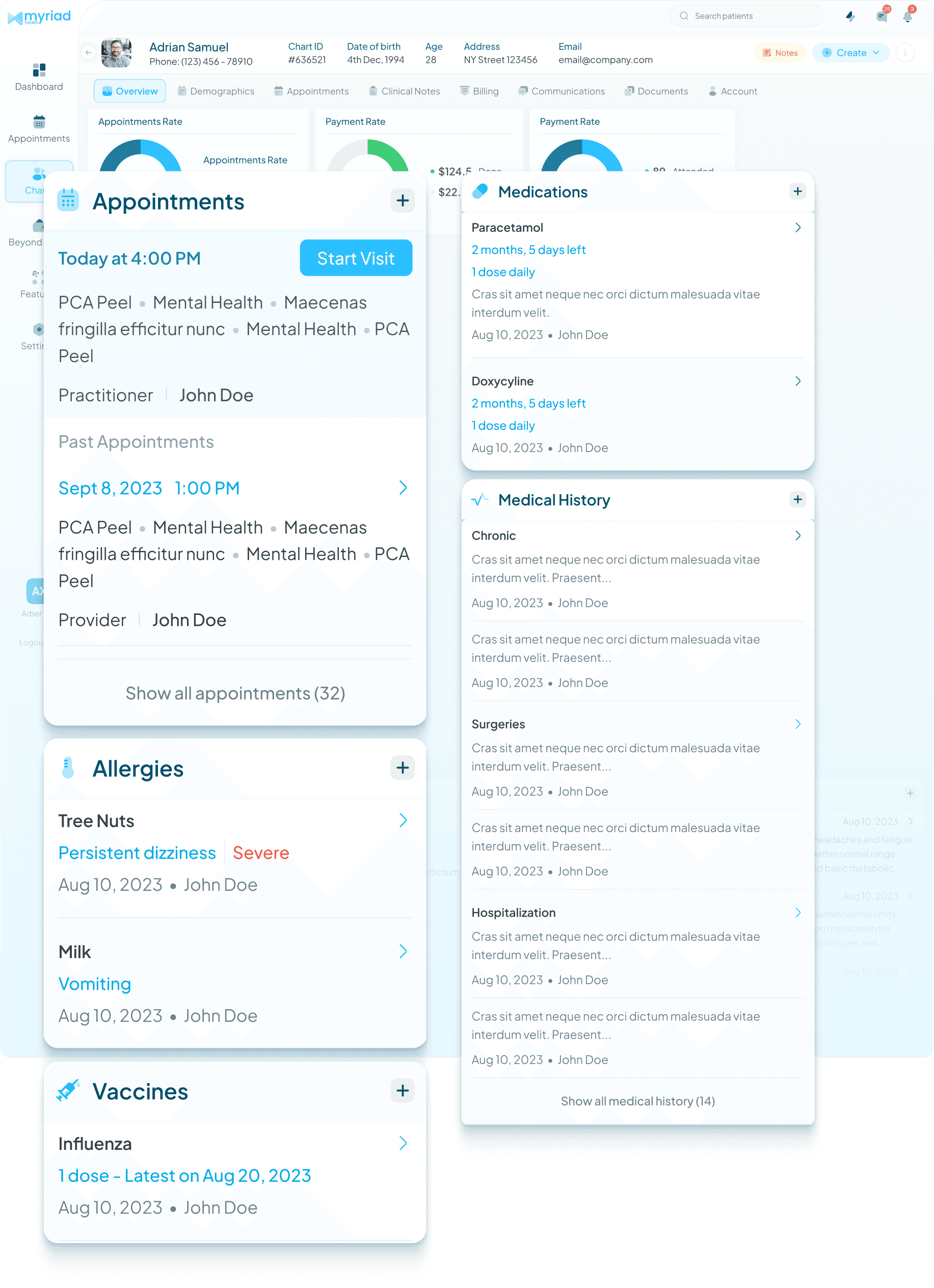 From pre-visit to encounter, payment, documentation, and insurance reimbursement, experience the first ever truly free EHR & Patient Management System. * One Platform, One Price Point with Myriad Health