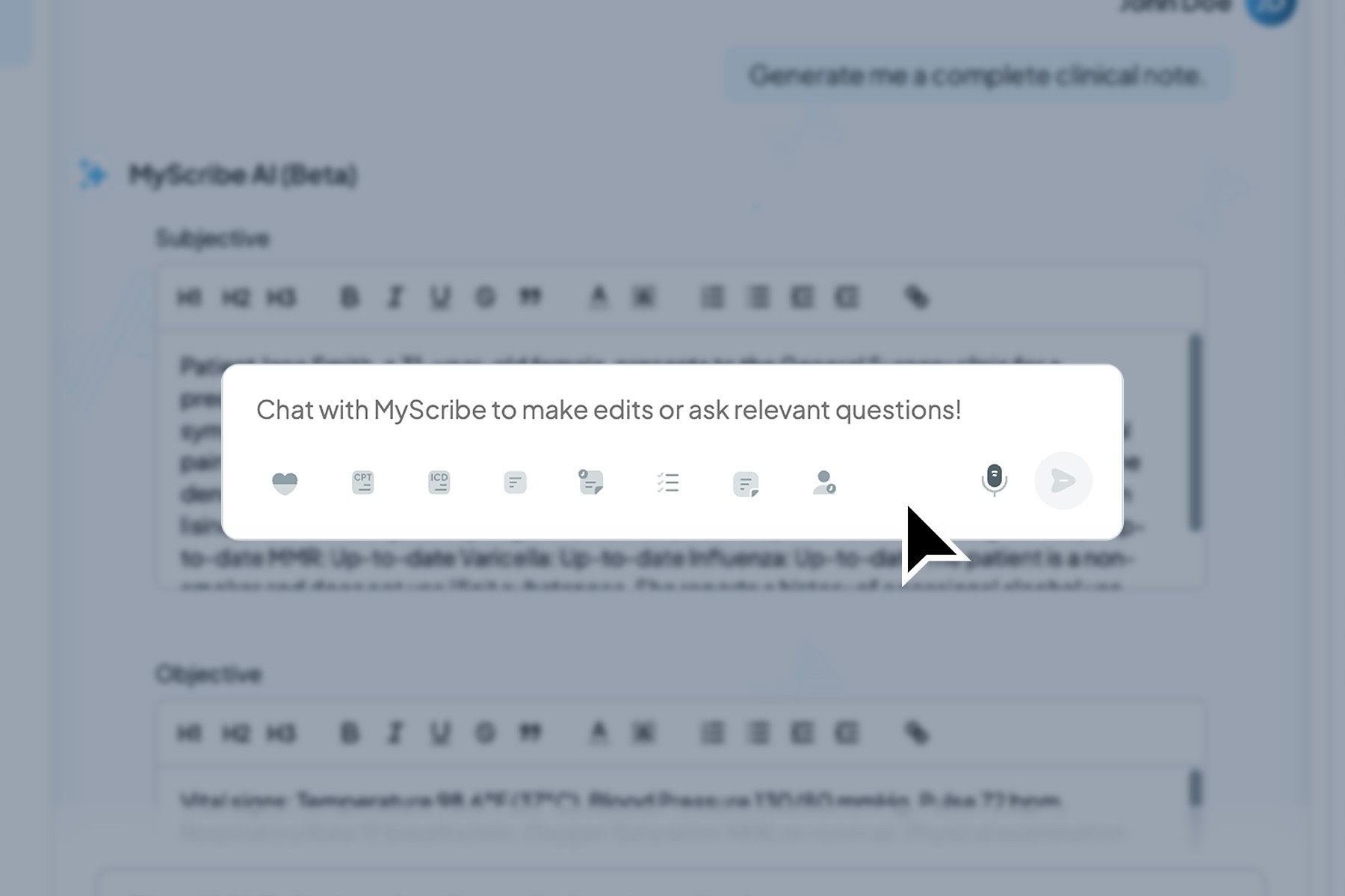 Get a feel for how MyScribe AI handles shorthand prompts and structures notes.